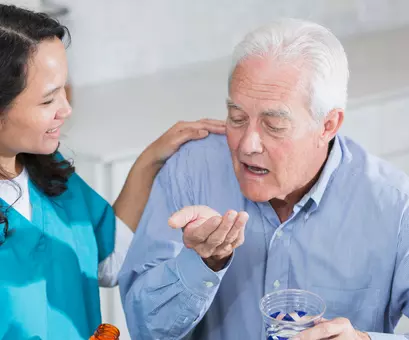 L’auxiliaire de vie veille à la bonne prise des médicaments.